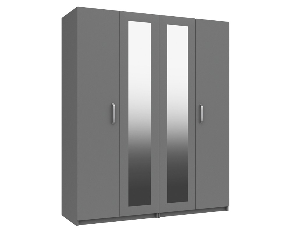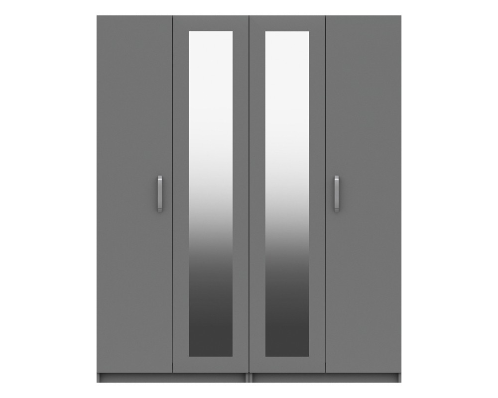 - Arden Dust Grey High Gloss 4 Door Robe With Mirrors