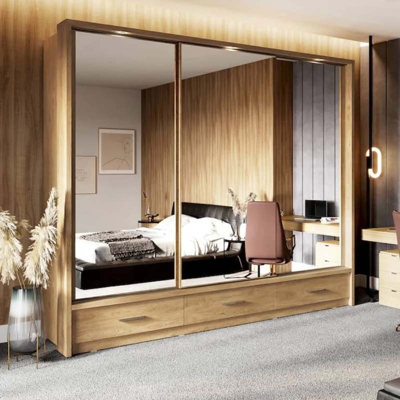 - Cardiff Oak Sliding Door Wardrobe 250cm With Lights