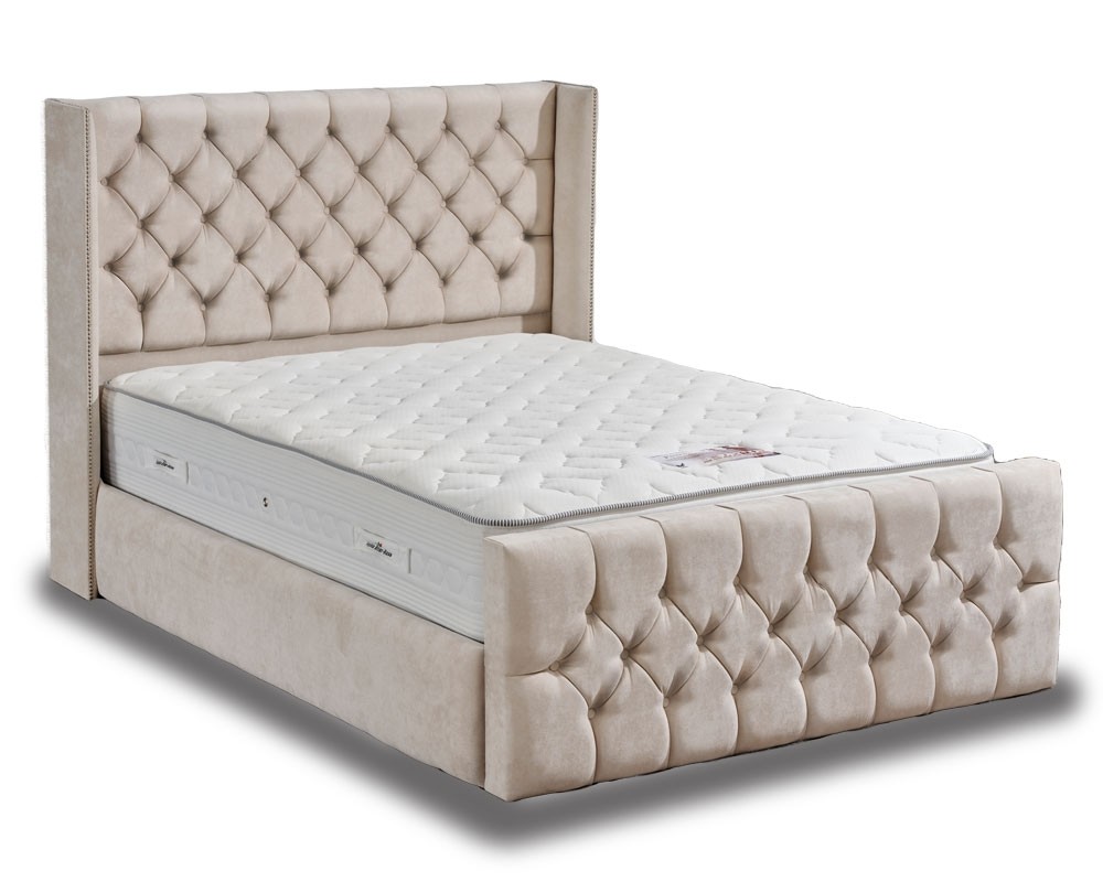 Period style winged super king size bed frame available in several high quality fabric finishes. Upholstery stud detail adds character and style. FREE Express Delivery.