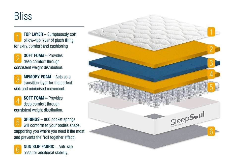 Bliss 800 Pillow Top Pocket Hybrid King Size Mattress