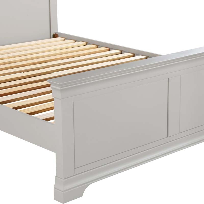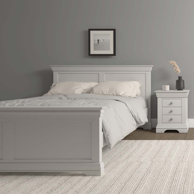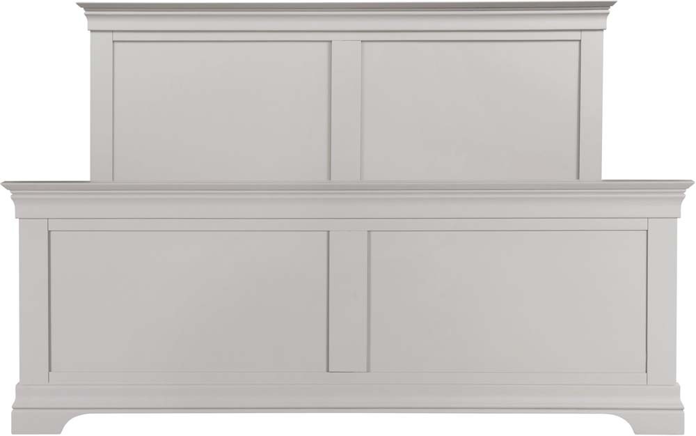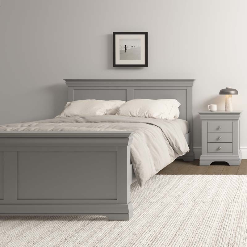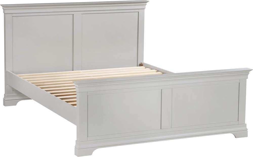 New. Beautiful French style wooden king size bed frame painted in a pebble grey colour. Sophisticated and timeless design at a stunning price. FREE Express Delivery.