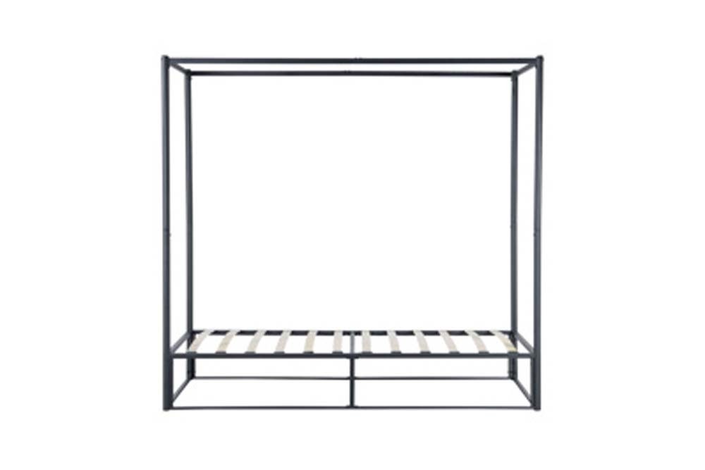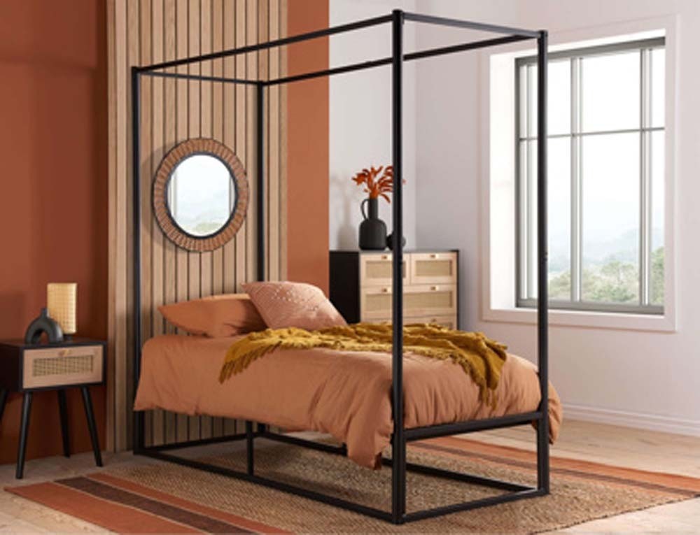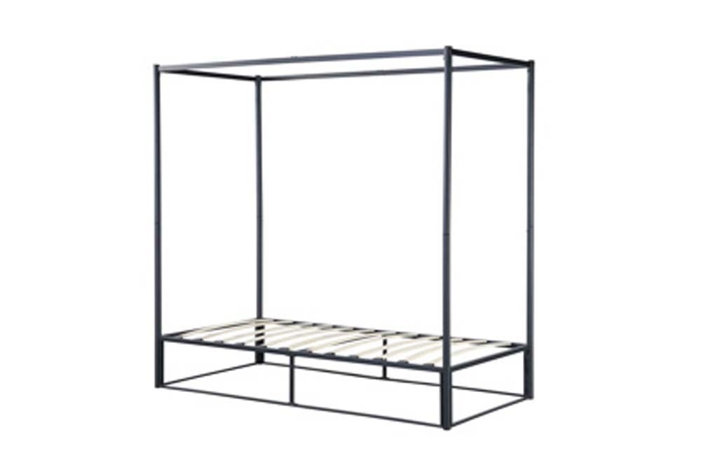 Contemporary single four poster bed frame in a black steel finish. Simple, sturdy design with a strong slatted base. FREE Express Delivery.