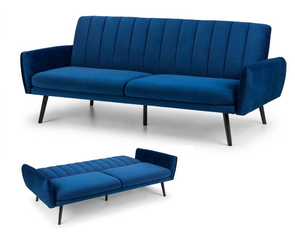 Blue velvet fabric sofa bed.Attractive design.Easily transforms into a spare bed.