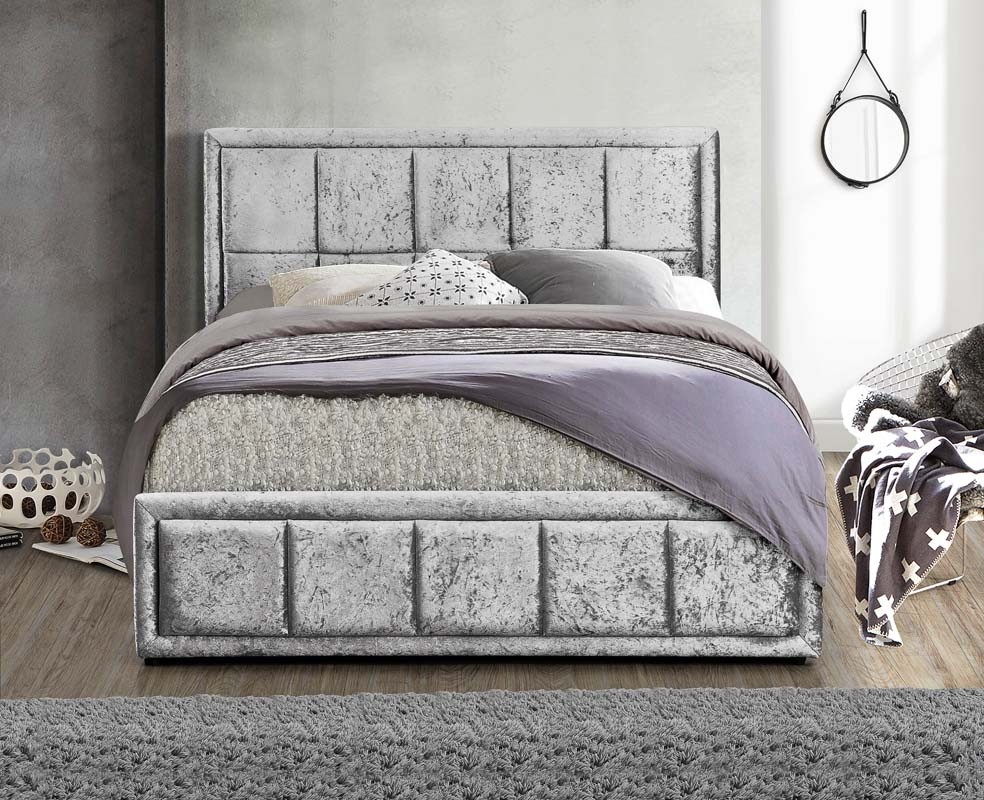 Stunning three quarter crushed steel velvet ottoman storage bed frame with a contemporary and compact design. FREE Express Delivery.