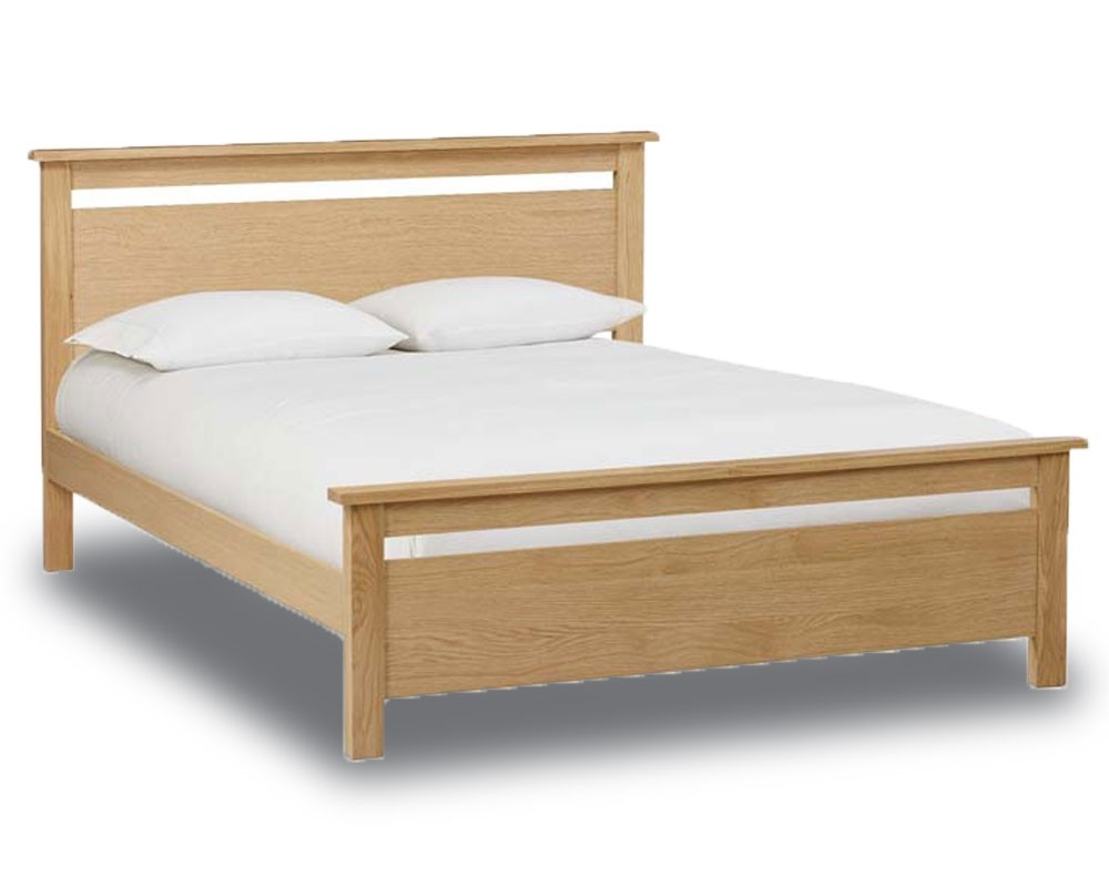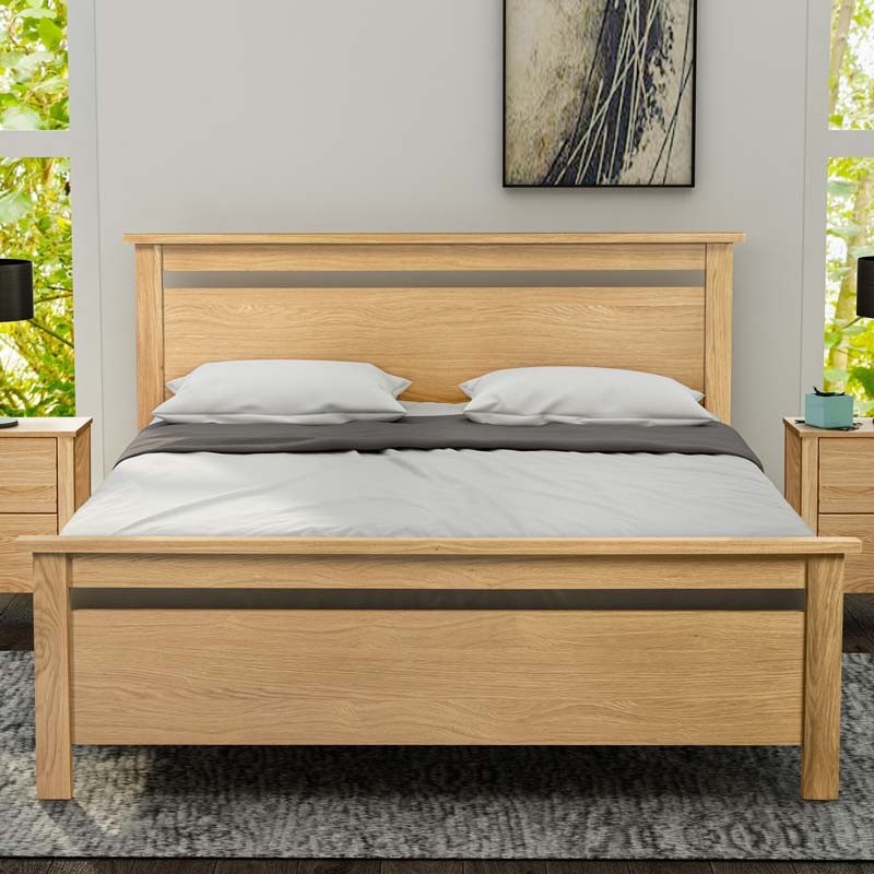 Stunning oak and oak veneer king size bed frame with a solid slatted base construction. Contemporary design. American oak sourced FSC certified. FREE Express Delivery.