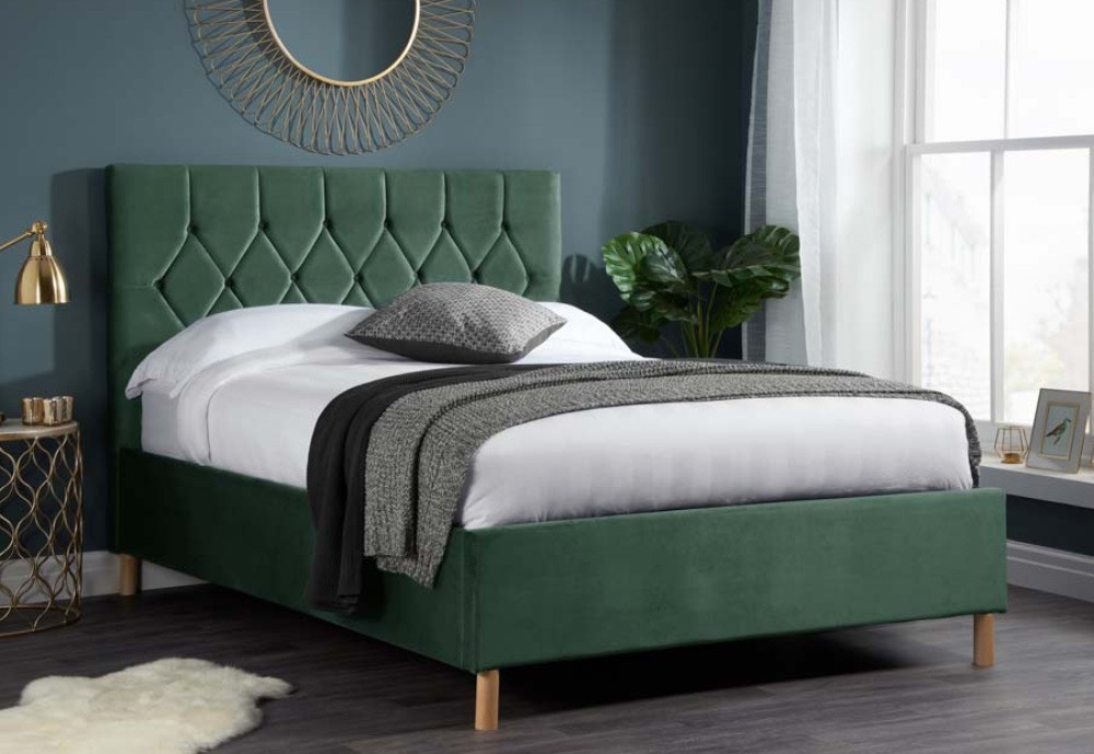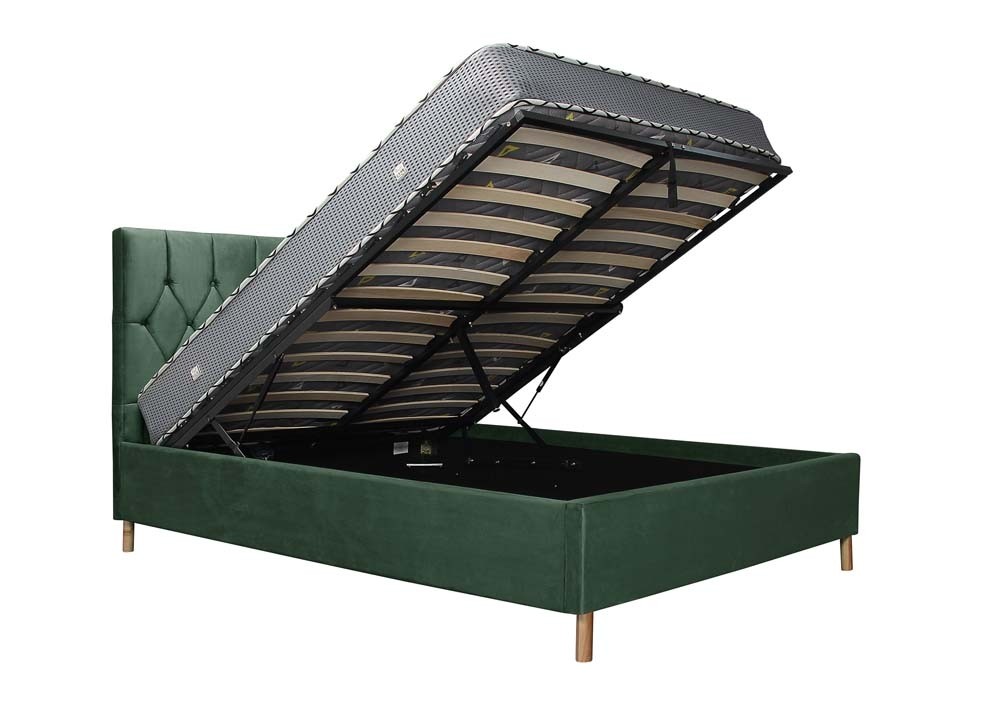 Sensational, diamond upholstered three quarter ottoman storage bed frame finished in an emerald green fabric. Add some hotel chic and handy storage space to your bedroom .FREE Delivery.