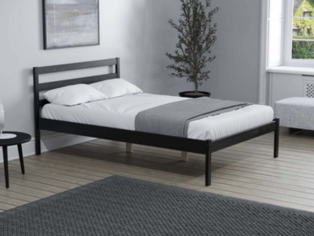 Minimal, contemporary design, painted black three quarter pine bed frame. Great value. FREE Delivery. Mattress sold Separately.