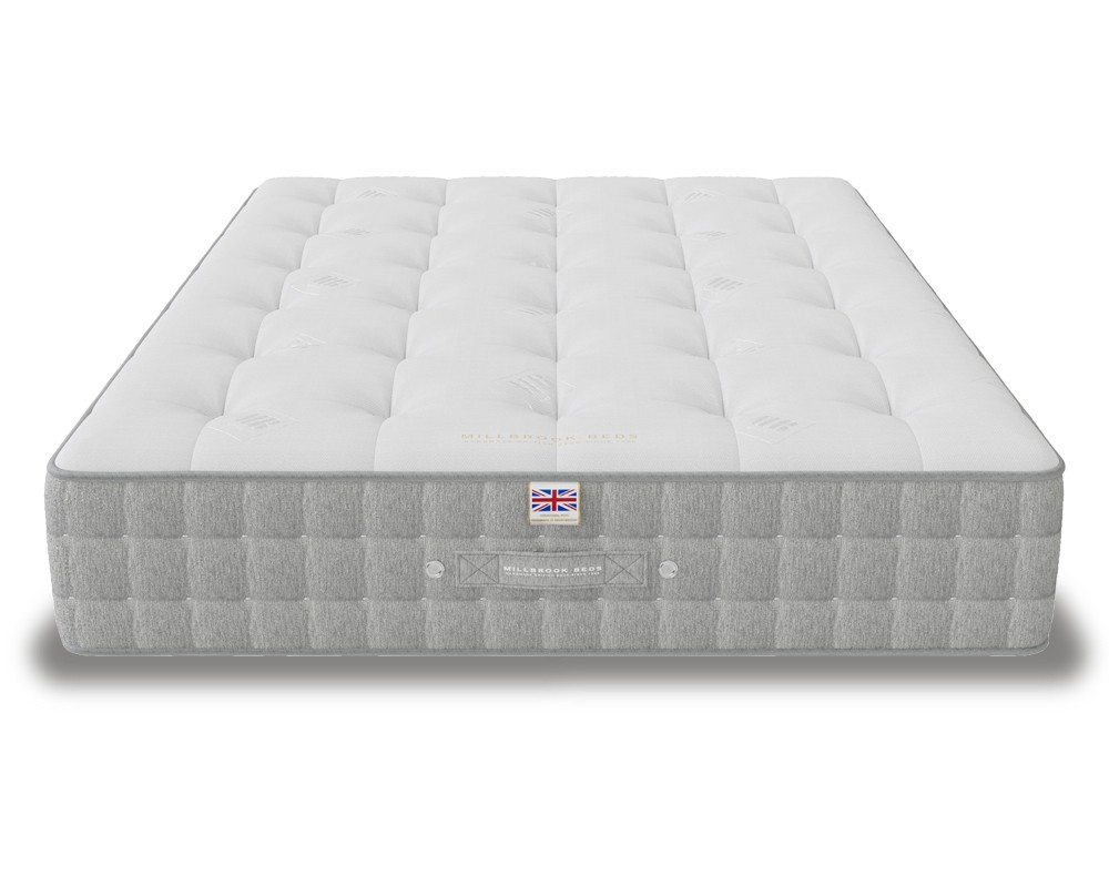 Millbrook Smooth Tech technology creates a smooth tuft free finish for a plush, medium feel 1000 pocket sprung king size mattress. English cotton, Hampshire wool, silk and cashgora create a luxurious, non turn mattress. Hand side stitching adds edge support and longevity to this premium mattress. Millbrook 5 year guarantee followed by 5 year warranty. FREE Express Delivery.
