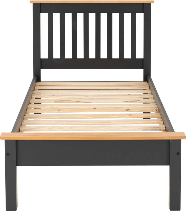 Sturdy and strong grey wooden single bed frame with a shaker style finish and a low foot end design. Natural wood plinths enhance the styling of this popular bed frame. FREE Delivery.