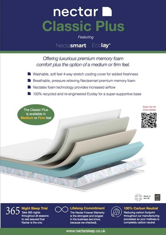 • Nectatex comfort foam layer uses graphite for 30x more breathability than memory foam.