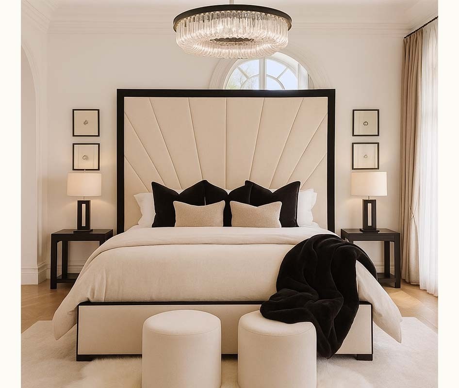Rule the room with this luxury, bespoke super king size bed frame. A marvellous sunrise bed frame design with a contrast border for a stylish and sophisticated look. Personalise to your height, colour and base type for an opulent look. Hand made to your order.