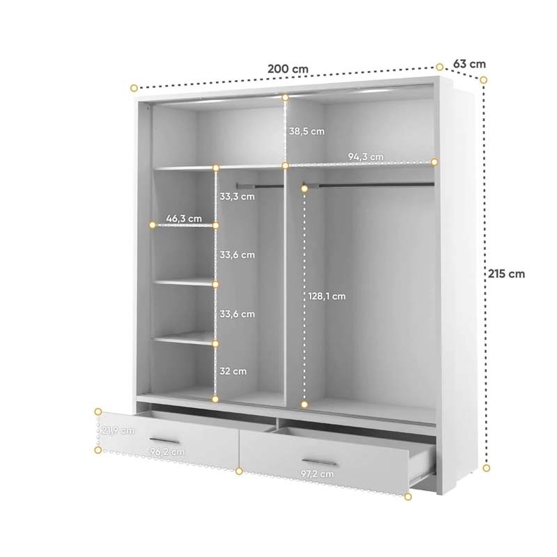 - Newcastle White Sliding Door Wardrobe 200cm With Lights