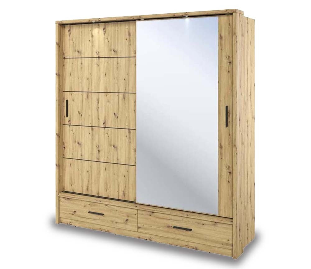 - Newcastle Rustic Oak Sliding Door Wardrobe 200cm With Lights