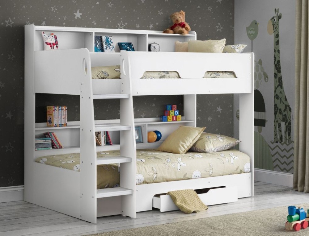 On trend, white, versatile bunk bed with a handy pull out drawer and extensive storage shelving. A sturdy ladder with glow in the dark strips completes this robust bunk bed. FREE Delivery. Mattresses sold separately.