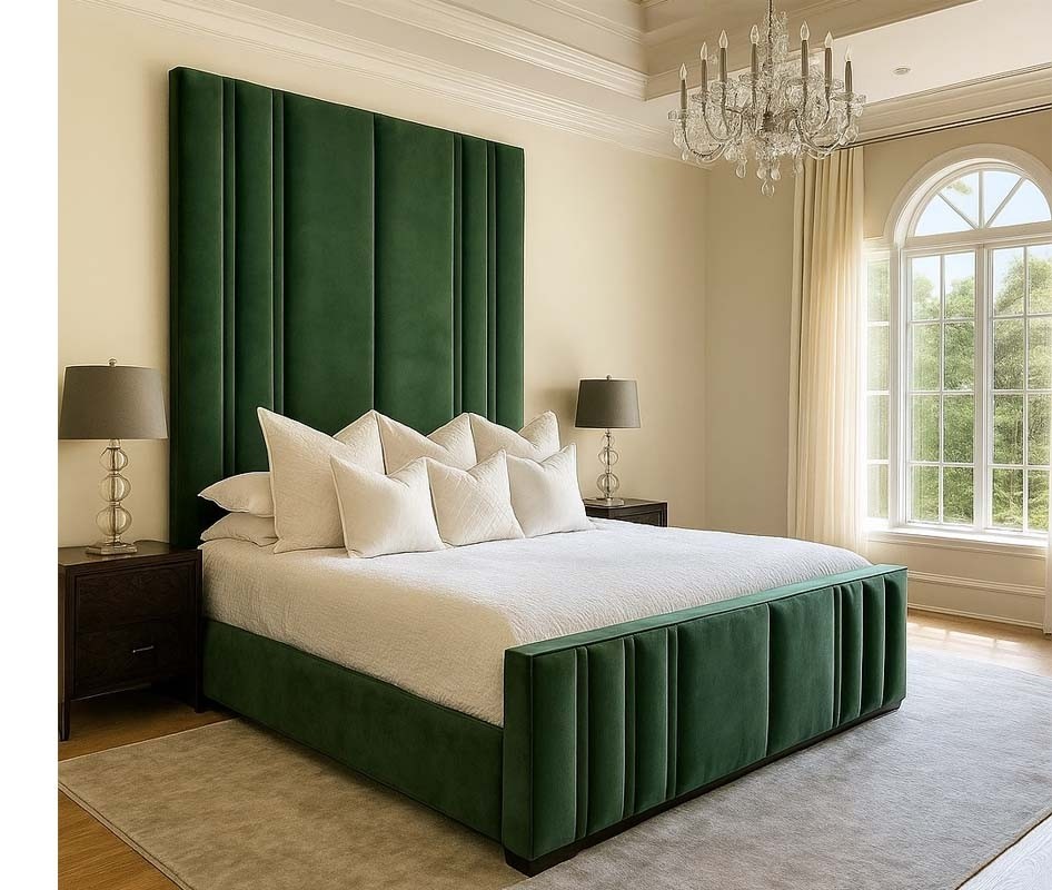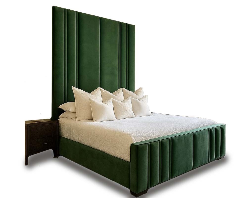 Rule the room with this luxury, bespoke three quarter bed frame. Designed to create an impact the Original Mirage bed frame design is hugely popular with those looking to create a statement piece for their bedroom. Personalise to your height, colour and base type for a striking, impactful look. Hand made to your order.