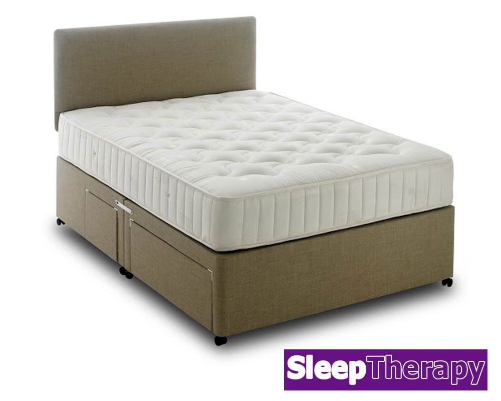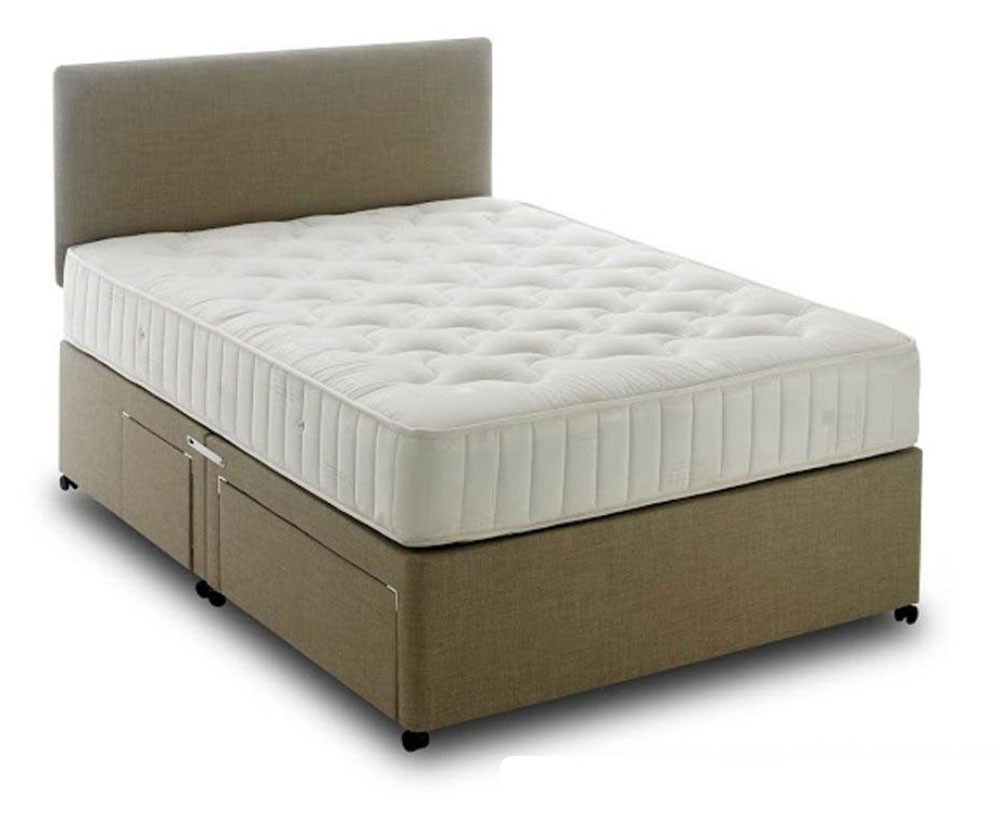 Deep and supportive king size open coil divan set with a luxurious feel and high quality damask cover and a comfy quilted finish.Stylish contrast base with 24 colour choices and all storage options available. 16 co-ordinating headboards available. FREE Express Delivery.