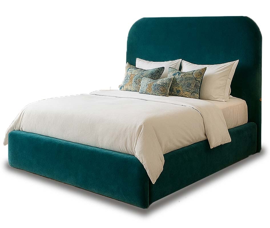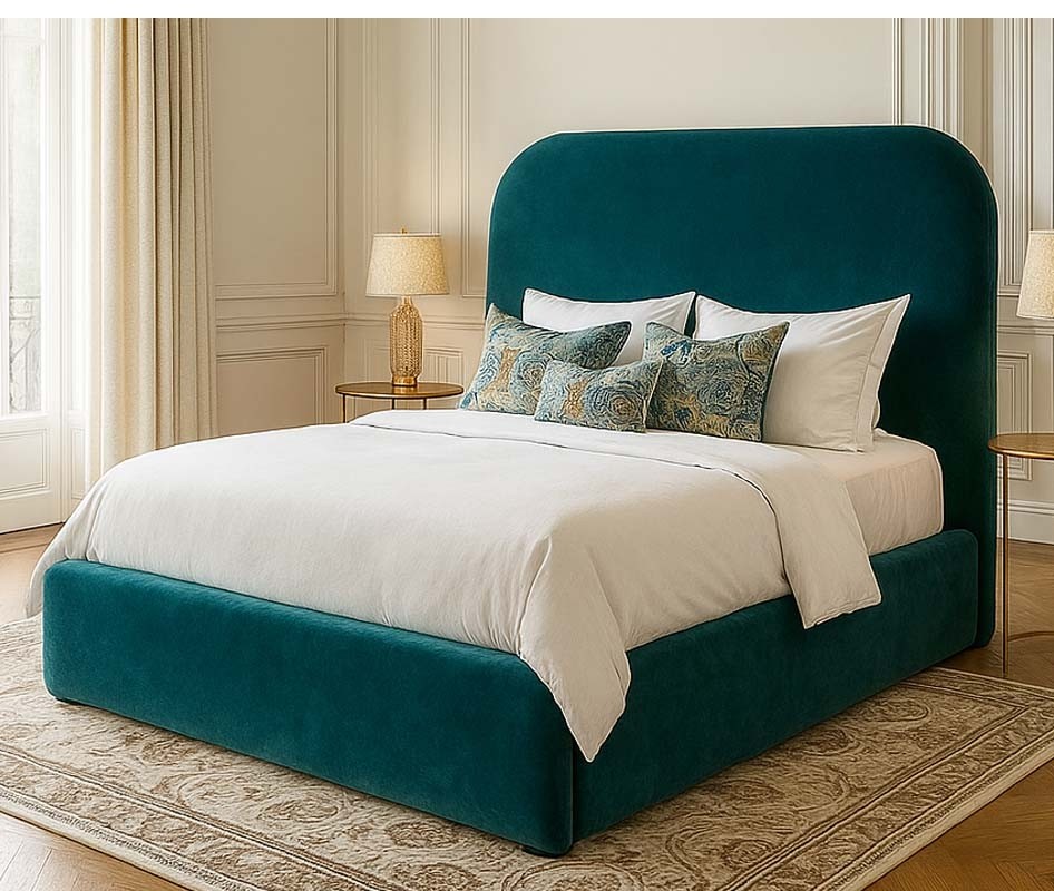 Rule the room with this luxury, bespoke double bed frame. Deeply padded, over size upholstered bed frame can transform your bedroom into a luxury sanctuary. Personalise your height, colour and base type. Hand made to your order.