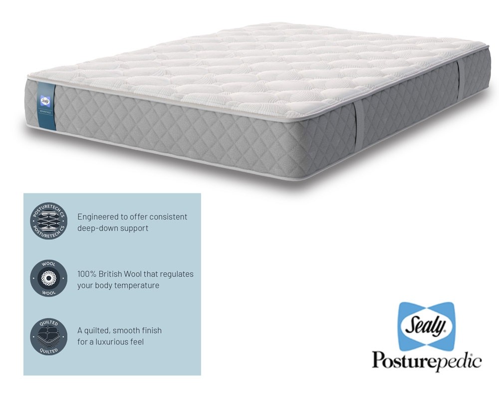 A Sealy Posturetech king size mattress with edge guard for a medium firm feel. The addition of wool above the springs adds superb temperature regulation for anyone sensitive to being warm at night. A modern, quilted finish gives this fantastic mattress a contemporary look. FREE Express Delivery.