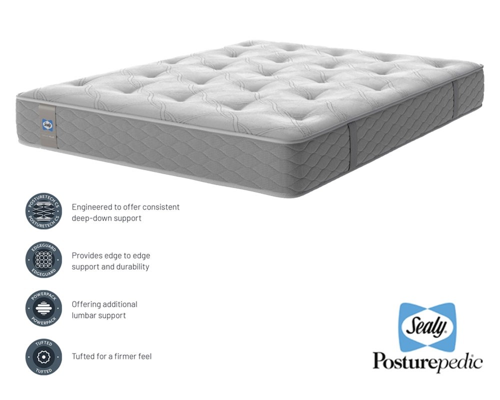 Extra firm Sealy double mattress. A Posturetech spring unit with reinforced edge guard and Powerpack lumbar support combine to provide a really supportive and traditional feeling mattress. Hand tufts add to the durability and support of this popular Sealy mattress. FREE Express Delivery.