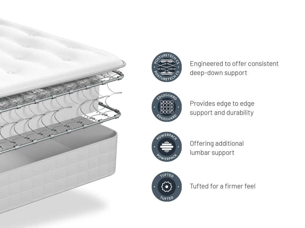 • Core Support Posturetech spring unit disperses weight across the bed.