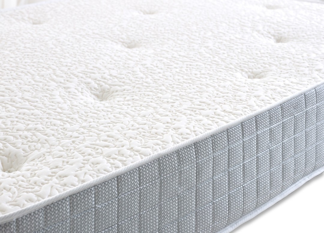 Simplicity 23cm deep sustainable double mattress. Recycled open coil spring unit with rod edge support and fillings recycled from plastic bottles. All covered in a soft stretch fabric with hand tufting. Medium feel. FREE Express Delivery.