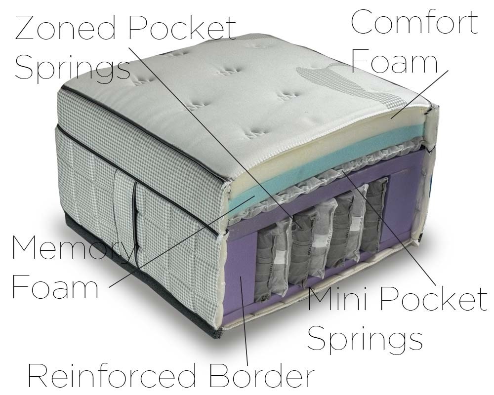 • Memory foam surface with micro pocket springs