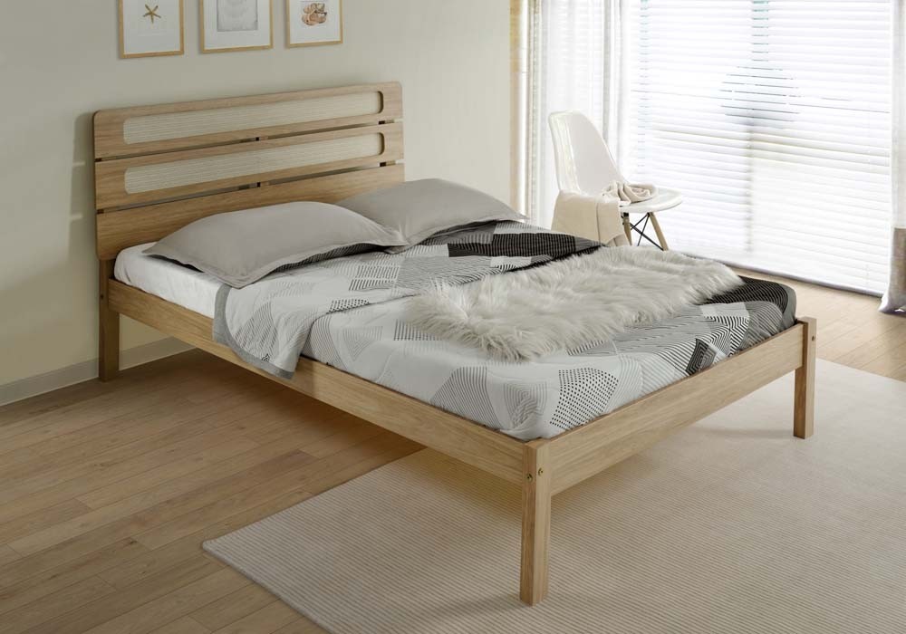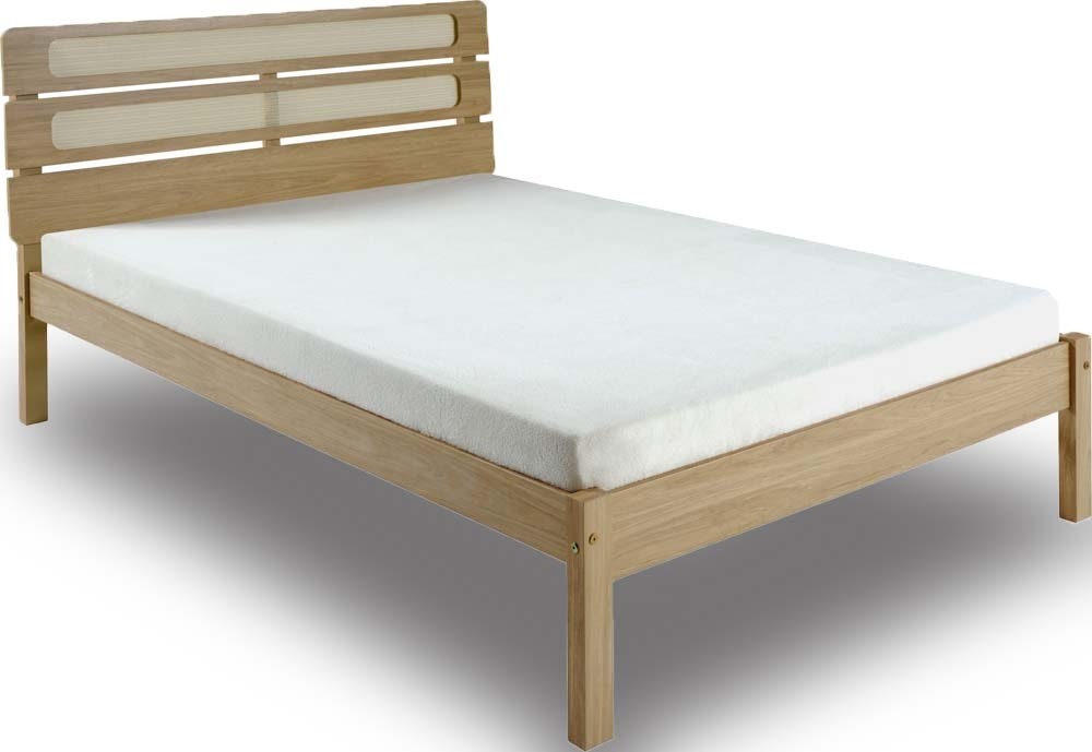 Sturdy oak colour with rattan detail wooden king size bed frame. FREE Delivery.