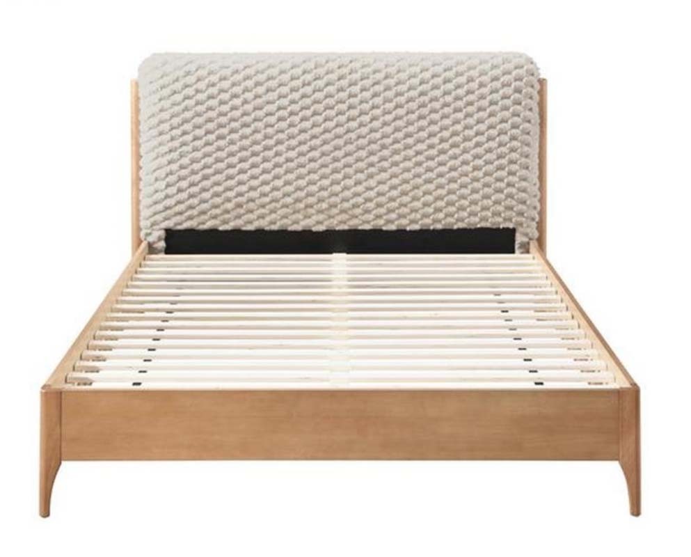 Brand new designer king size bed frame combining the patterns of wood grain and the texture of (faux) fur to create an attractive and inviting bed. Solid slatted base. FREE Express Delivery.