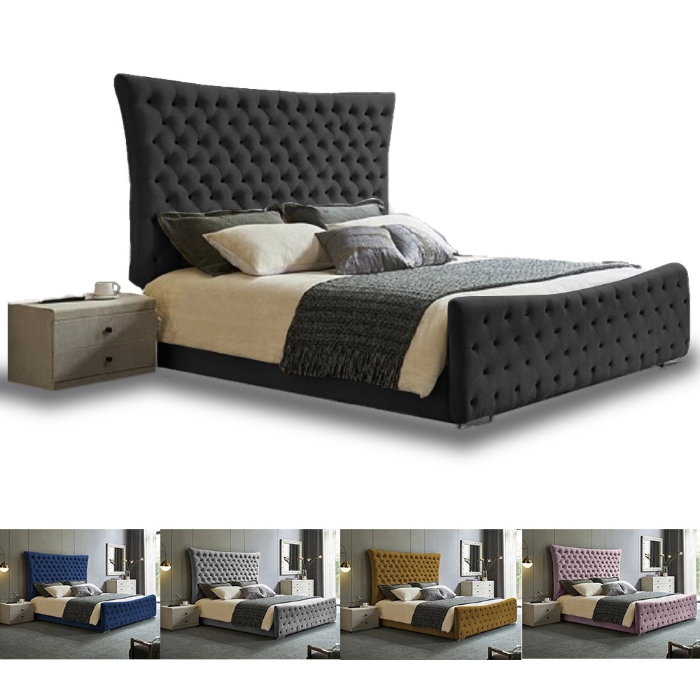 A wonderfully shaped and upholstered king size bed frame with fabulous curves. Can suit both modern and traditional design schemes. Available in 5 tremendous colours. Designed and built in the UK.Free Delivery.