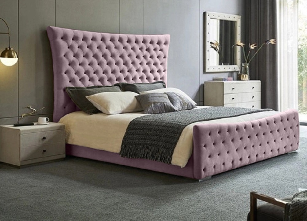 A wonderfully shaped and upholstered super king size bed frame with fabulous curves. Can suit both modern and traditional design schemes. Available in 5 tremendous colours. Designed and built in the UK.Free Delivery.