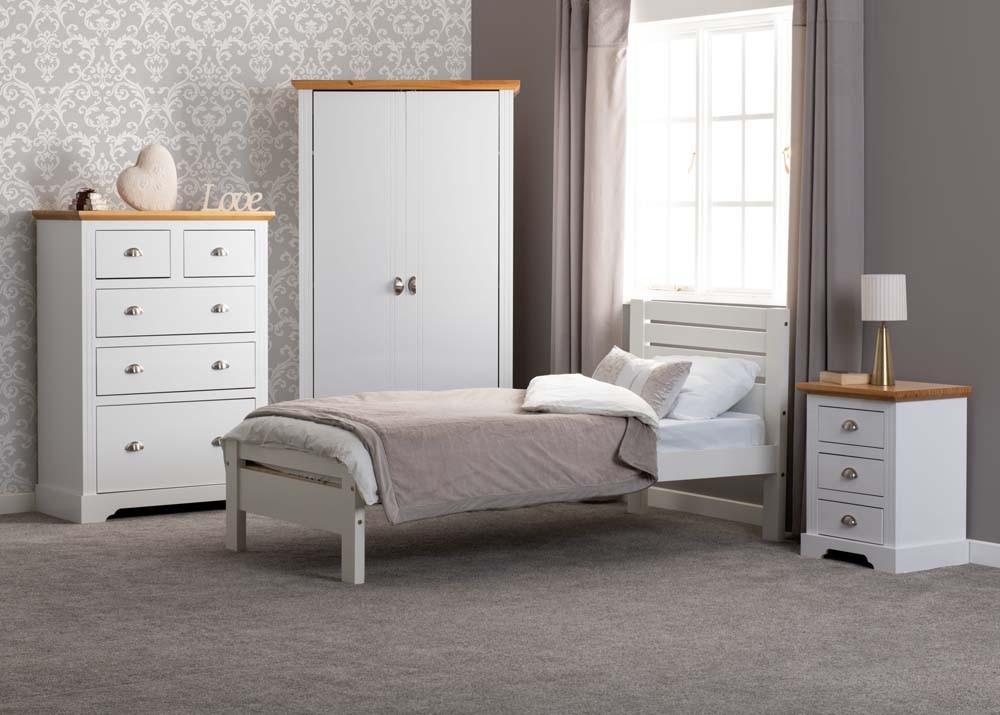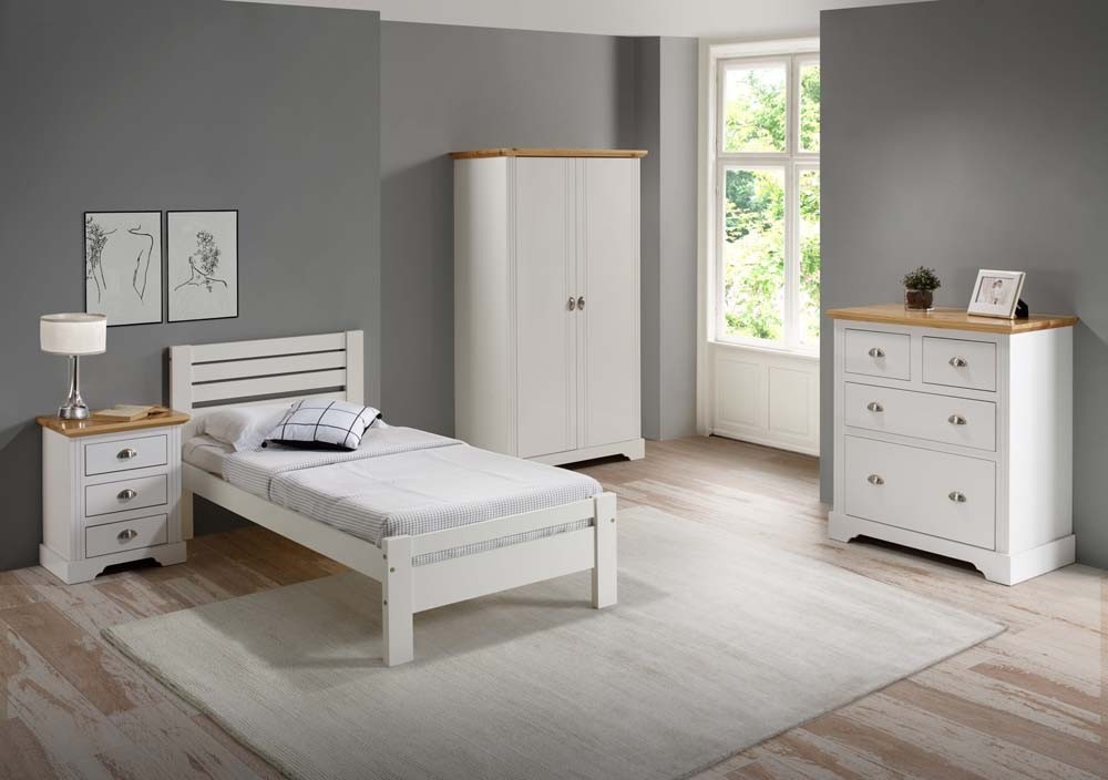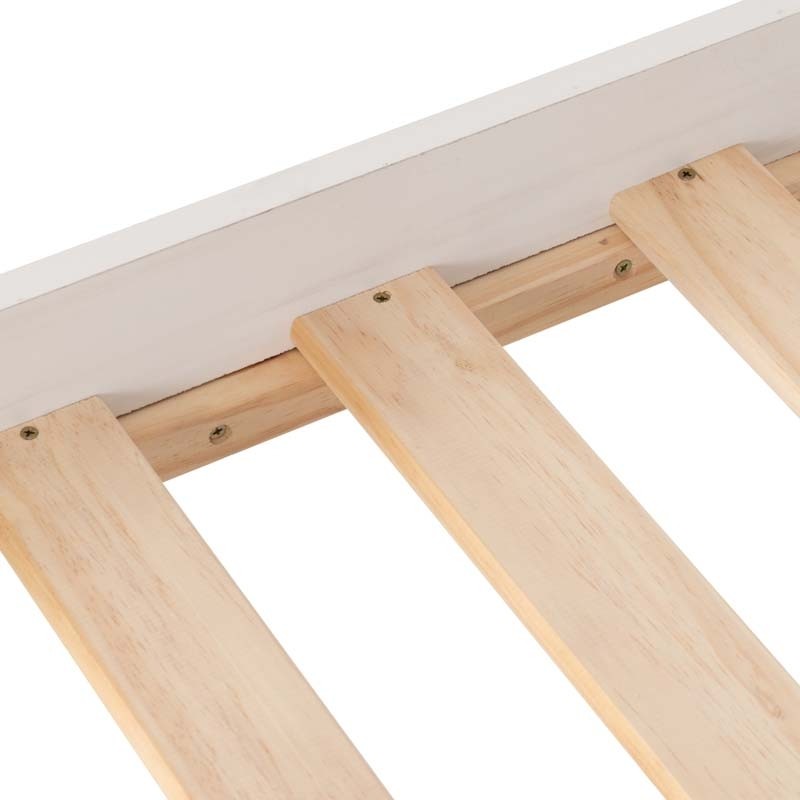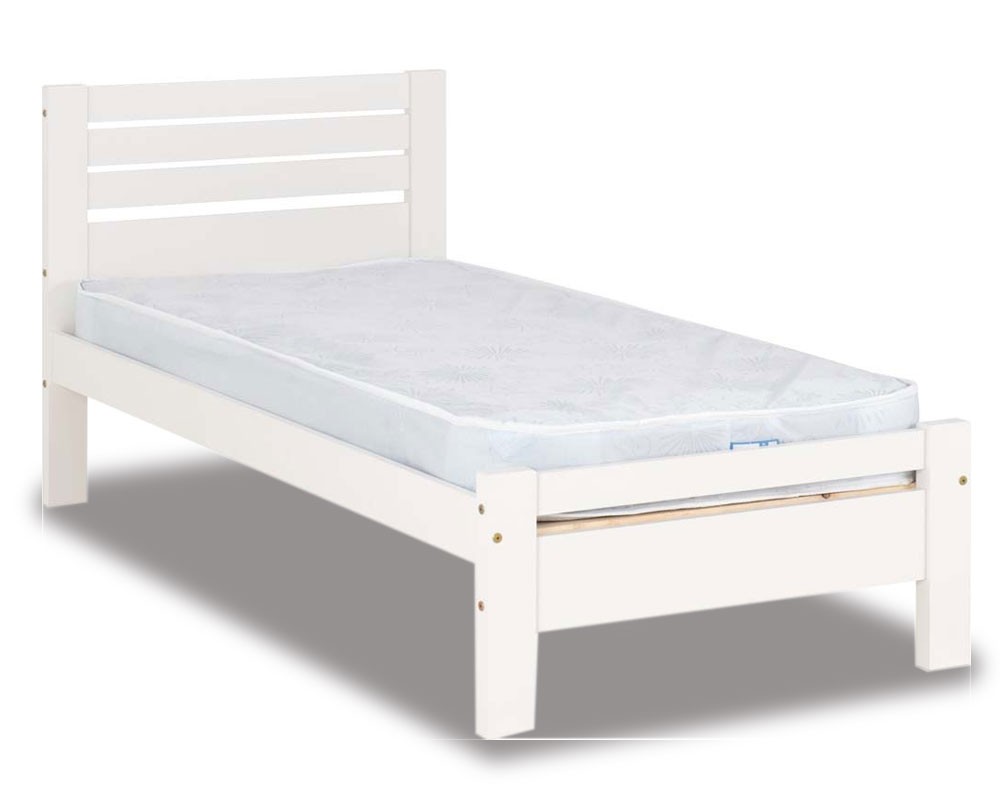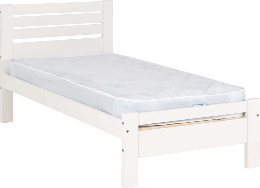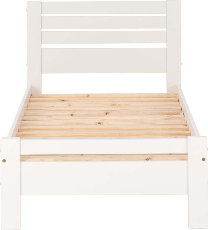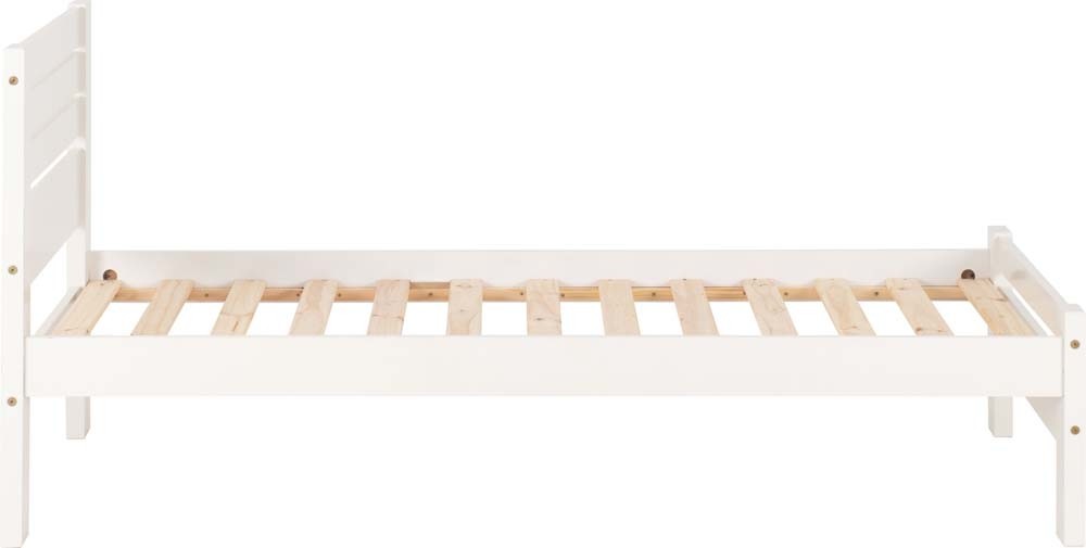 Sturdy, wooden single bed frame in a painted white finish. Solid slatted base. FREE Express Delivery.